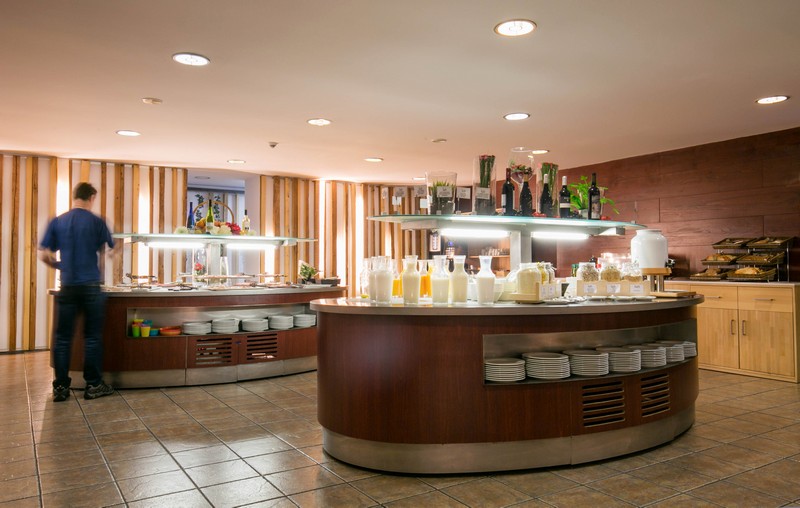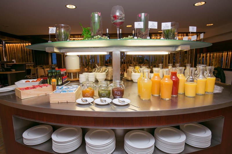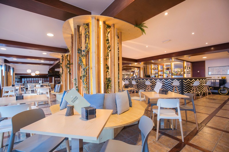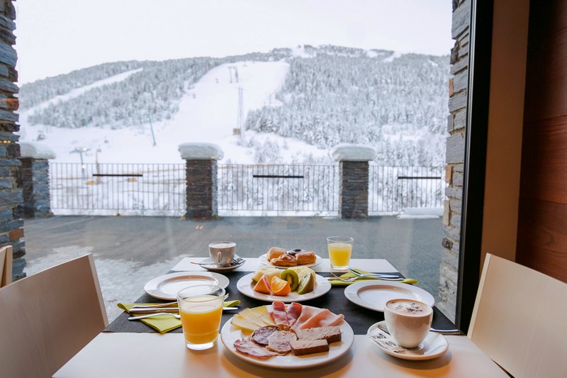 I hotellets restaurang serveras middagsbuffén och precis som frukosten så ingår detta i priset. Piolets bar är en populär mötesplats för såväl hotellgäster som för besökare och invånare. Detta gäller även hotellets lobbyterrass som är känd för dess fina vyer där man kan avnjuta en kall dryck till utsikten av skidåkare på väg ner för Soldeus världscupbacke.